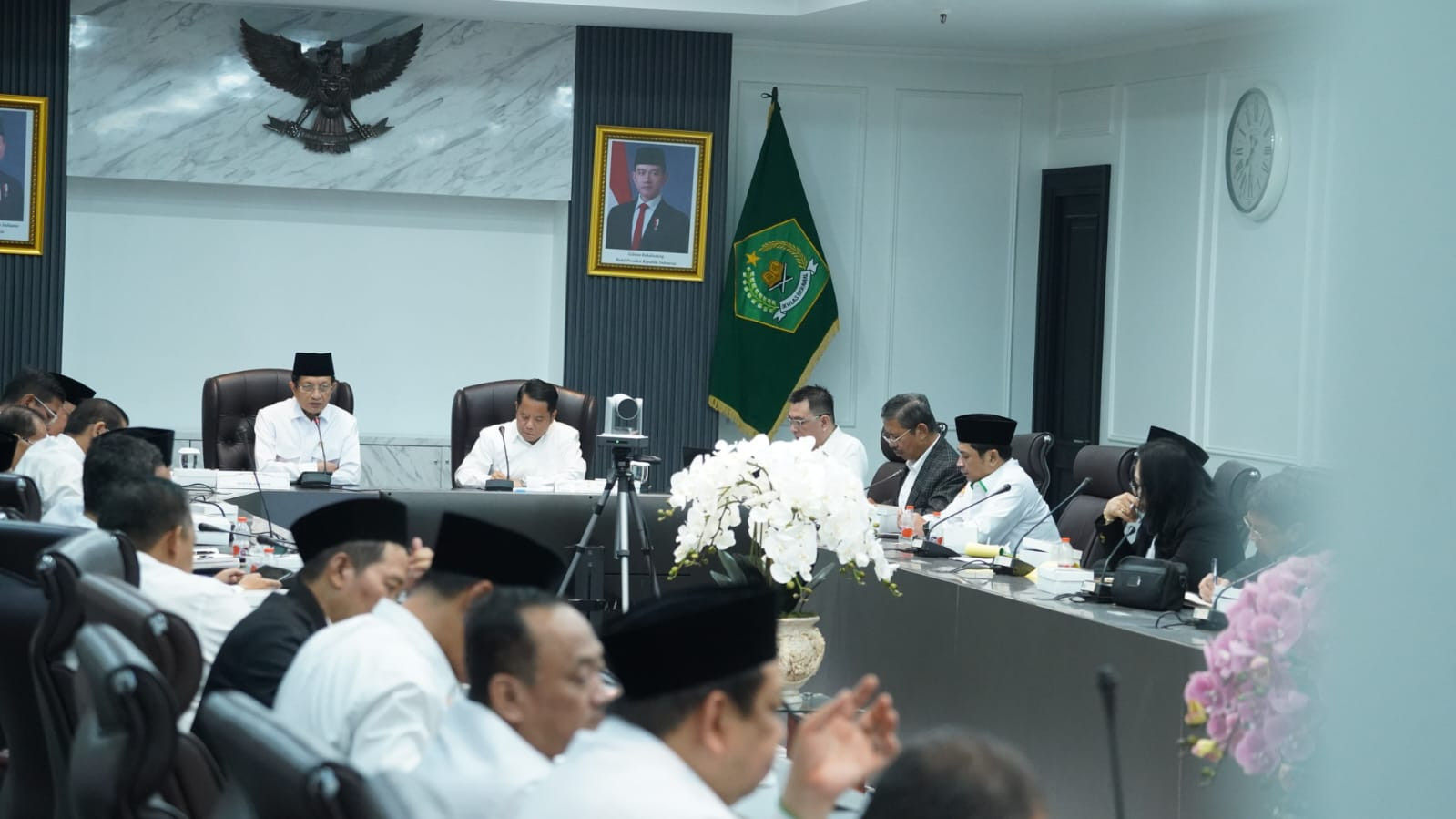 Pesan ini disampaikan Menag saat memimpin breakfast meeting secara hybrid, Selasa (23/9/2025). Rapat luring dipusatkan di kantor pusat Kementerian Agama, Jakarta. Hadir, Sekjen Kemenag Kamaruddin Amin bersama para pejabat eselon I, Staf Khusus Menteri Agama Bidang Kebijakan Publik, Media, dan Pengembangan SDM Ismail Cawidu, serta para pejabat Eselon II pusat. Ikut bergabung secara daring, para Kepala Kanwil Kemenag Provinsi dan pimpinan Perguruan Tinggi Keagamaan Negeri (PTKN).