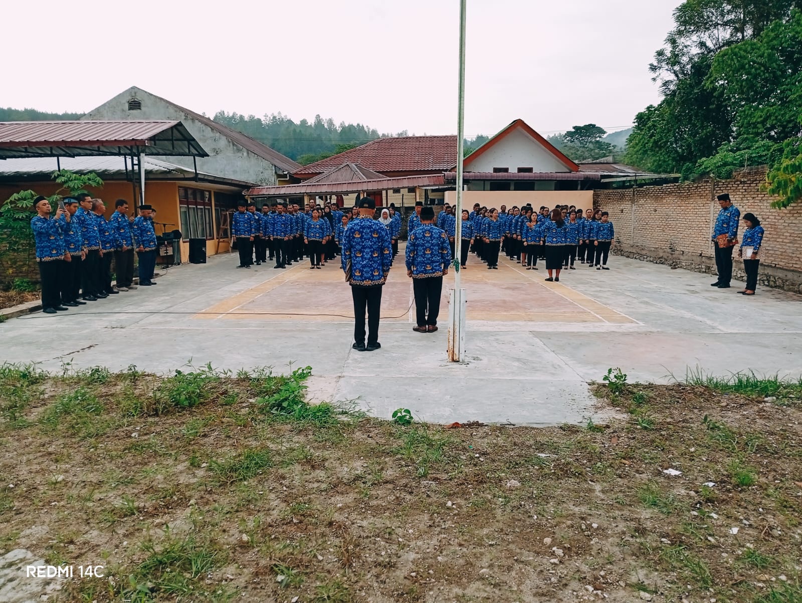 Tarutung (Humas). Kepala Kantor Kementerian Agama Kabupaten Tapanuli Utara Tigor Sianturi, MM pimpin upacara dalam rangka memperingati Hari Kesaktian Pancasila, bertempat di Lapangan Mini Kankemenag Taput, Rabu (1/10). Upacara memperingati Hari Kesaktian Pancasila di ikuti Kasubbag TU Dr. H. AR. Munir Aritonang, M.AP, Para Kasi / Penyelenggara, Ka.KUA Kecamatan / Penghulu, Pengawas, Penyuluh, ASN, CPNS, PPPK dan Tenaga Pramubakti.
